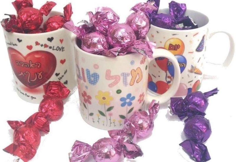 ספל עם הקדשה ועשרה פרלינים שוקולד מעולים,