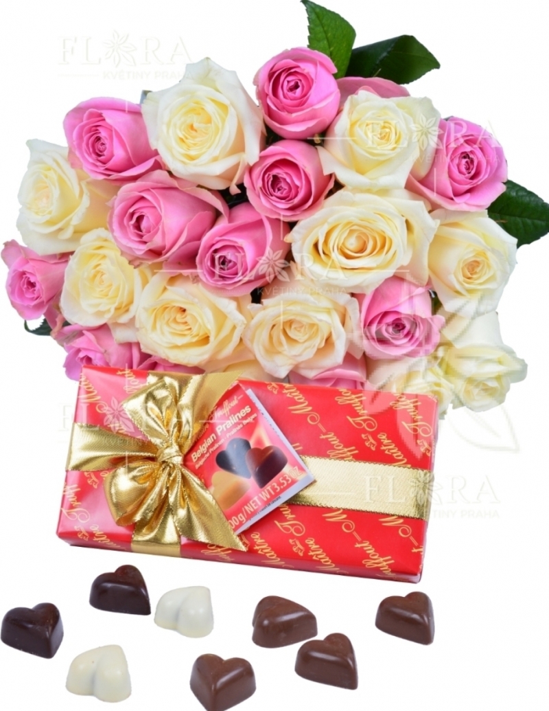 מארז של 17 ורדים ורודים ולבנים בתוספת