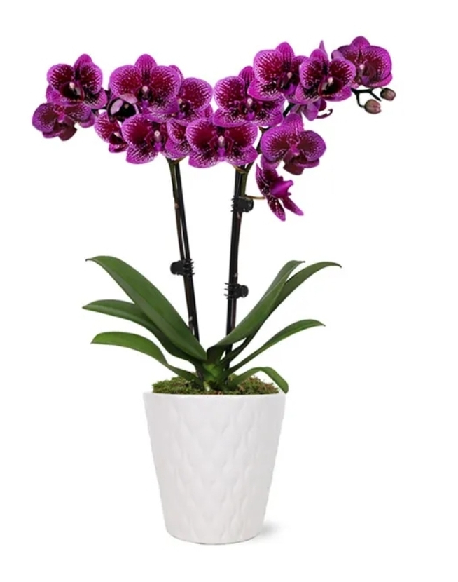 סחלב סגול 2 ענפים המגיע בכלי קרמי